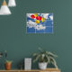 balloon bouquet in sky thru window poster