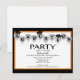 Start off your event right with our trendy & stylish grey balloons with black graduation caps graduation post card invitation set on a white background with an orange frame. Perfect graduation invitation for a high school graduation or college graduation. Just fill in your information add your photo and you're all set to go. Visit our shop at www.celebrateitgraduations.com for a large assortment of graduation invitations! graphics©delightful-doodles