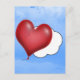 Send a quick note with this cute postcard. An illustration of a heart shaped balloon, floating through a blue sky with clouds.