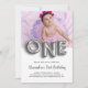 Balloon text fun First Birthday Party - Personalised invites from Ricaso .. add your own details to these invitations featuring a great 3d effect silver balloon design