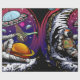 Original vector art of a astronaut having moon cheese and passing a slice to a alien. Created in vector.