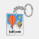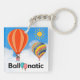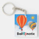 This original keychain design shows a Balloonatic (ballooning enthusiast) floating along in the clouds with a bird's eye view of the ground in a hot air balloon and not a care in the world. Magic. Up, up and away.