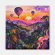 A.I. assisted print of hot air balloons floating across a vibrant, morning sky as the sun rises above the horizon over a lush, exotic, surreal, tropical landscape.