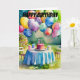 Balloons and Birthday Cake in Backyard Watercolor Card