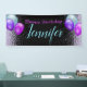Chic girly birthday banner done in a horizontal layout, with graphics of mauve, purple and aqua balloons and faux glitter, on a black background. Aqua and pink coloured text is ready to personalise to read what you want. Great addition to any birthday party or just to wish your loved one a happy birthday.