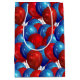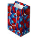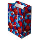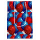 Paper gift bag is shown in a white colour with a glossy finish with a festive blue and red balloons print.