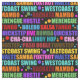 This colourful all-over repeat pattern features the names of many of the major ballroom dance styles, set in a bold typographic font in a variety of bright colours. Interspersed between the words are different sized dots accenting the design. Dances represented are foxtrot, tango, cha cha, rumba, samba, east and west coast swing, merengue, bachata, hustle, quickstep, lindy hop, waltz, paso doble, two step, bolero, mambo, and jive. This art is designed with a transparent background which allows for you to easily change the background colour by choosing to customise further. Vibrant and cheerful!