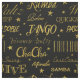 This all-over repeat pattern, in a gold 'faux-glitter style, features the names of many of the major ballroom dance styles, set in typographic fonts that allude to the particular style of dance. Interspersed between the words are different sized stars accenting the design. Dances represented are waltz, tango, foxtrot, cha cha, rumba, jive, east coast swing, quickstep, samba, paso doble, Viennese waltz, mambo, and bolero. This art is designed with a transparent background which allows for you to easily change the background colour - simply select the ‘Customise It!’ button and then choose your desired background colour from the ‘Printed Background Colour’ selected.