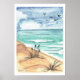 Baltic Shore - an original painting (done first in watercolor) of a Baltic shore with sandy dunes and their grasses, with a flock of seagulls on the blue sky over the water. It was a bit windy, so you can sea plenty of waves running towards the beach.