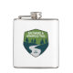 The flask itself is fine. It’s a cheap flask, obviously bought in bulk, however am prepared to overlook that. Given that it is a personalized item, I would have liked to have seen gift boxing instead of the generic packaging. Terrible printing, and/or quality. It’s a cheap, tacky vinyl. It is not cut straight and is also applied in a way that it is overhanging the bottom, causing the glue to catch on items and it will eventually roll and tear, damaging the wrap.