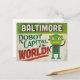 A funny Baltimore Maryland vintage travel postcard featuring a friendly robot with fun retro style text that says, "Baltimore, Robot Capital of the world!"