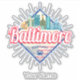 Baltimore city in United States with skyline Vintage US flag souvenir for Maryland holiday. Baltimore with retro crab in the USA as a souvenir for Maryland and America. Baltimore lifestyle for urban backpackers and American city trips.