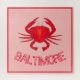Puzzle design features an original marker illustration of a red hardshell crab, with BALTIMORE in a fun red font.