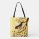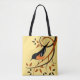 Baltimore Oriole art on tote bags with leaf and swirl branches pattern