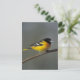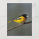 This post card is a photograph of a beautifully coloured balitmore oriole bird.
