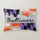 Custom brushed polyester accent pillow printed with my original mixed media 'Baltimore Skyline' design.