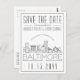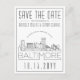 A unique wedding save-the-date postcard for a marriage taking place in the big and beautiful city of Baltimore. This invitation features a stylised illustration of the city's unique skyline with its name underneath. This is followed by your wedding day information in a matching open lined style. On the reverse side of the post is your address information. All individual elements of the invite card are unlocked so feel free to change any details necessary such as font sizes, styles and more by using the customisation function. You can add a photo to the reverse side and add a black and white filter to it. Have fun being creative and making it your own!