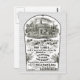 A postcard with a reproduction of an authentic advert for Whiskey dating from 1867. This vintage design promotes whiskey sold by the distillers at their premises in South Street, Baltimore. The engraving shows a log cabin with tall chimney in use, the sign over the front door says "Establishd 1825". Men stand outside the shack alongside horses drawing carts with casks of whiskey stacked inside and outside.