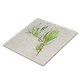 As a stand-alone or as a companion to Leslie Sigal Javorek's "White Bird and Cherry Blossoms on Birch", this beautiful custom-made ceramic tile features a graceful watercolor branch of young bamboo leaves on a background of white birch bark.