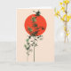 A couple stalks of green bamboo with leaves stand against a red, rising sun, on a pale tan parchment background makes a beautiful Asian-themed birthday card.