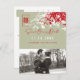 Modern zen red and light moss grey bamboo leaves silhoutte with a simple minimalist rectangle double happiness symbol, photo save the date announcement postcard. An elegant chinese / oriental / asian themed wedding design which is stylish, contemporary and classy.