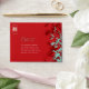 Oriental zen red, dark burgundy and turquoise blue bamboo leaves with a simple minimalist frame faux gold foil double happiness symbol wedding envelope. An elegant and stylish chinese / asian / oriental themed wedding design which is modern, simple and classy.