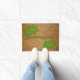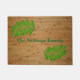 Stylish tan and green door mat done in a bamboo wood looking background. Pretty green fern leaves, decorate the top left and bottom right sides of the mat. Personalise the green text to read what you want.