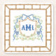 This chic design features a Bamboo Crest with a blue bow surrounded by olive tree topiaries in chinoiserie pots. There is a bamboo frame around the outside edge. You can personalise with your monogram.