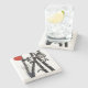 The coasters are gorgeous, a quality feel and heavy weight. They look like a precious archeological find. A rustic stone juxtaposed with a modern floral black and white print. I like the way the print goes slightly imperfect on the cut stone edges giving them a kind-of natural beauty.