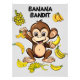 A cheeky monkey surrounded by bananas and peels, capturing mischief and fun in every detail.