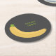A black coaster with a banana and green customisable text for lovers of this yellow fruit. It could be used when you received friends or family at home or in a bar!