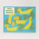 Create a personalised gift for puzzle aficionados when you add your own custom message to this jigsaw puzzle that features fun illustrations of dogs made out of yellow bananas along with some green tropical palm leaves against a bright blue background.