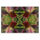 The original artwork on this 11”x8” Cutting Board was created from an original photograph by HomeWare of a banana flower. The photo has been repeated to form this tropical pattern. The colours are straight from nature, with an intricate background of yellow green, unripe bananas and the rich, dark reddish brown of the flower petals, called bracts, curving around in front. Beneath every layer lies an orderly row of little yellow-tipped fronds. These are the buds that eventually become bananas. The petals are a lighter, dusty pink colour as the layers unfold towards the heart of the flower.
