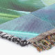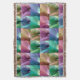 The original pattern on this Throw Blanket was made from original photographs by ZoeSPEAK of banana leaves on a tree in the garden. The photos are closeups, showing the ribbed patterns of the leaves as they curve around each other in the sunlight. The photos have been tinted with a variety of muted colours, sheer greens, blues, browns and purples. The seams where the photos meet have slightly wavy edges, as if stitched together like a quilt.