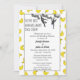 Fun Jack and Jill wedding shower with a banana and monkey theme! Design features a white background with pattern of yellow bananas. In the centre is a solid white area with dark grey trim. Across the top is a dark grey vine with silhouettes of a bride to be and groom to be monkey swinging from the vines. The groom to be monkey is wearing a bow tie and the bride to be monkey is wearing a purple bow on her head. There is text to the left of the monkeys that says They're Just Bananas About Each Other! Below is customisable text where you can add the Jack and Jill wedding shower details to the invitation. The reverse side of the Bananas About Each Other invitation is a solid banana yellow. A cute and unique Jack and Jill wedding shower theme!