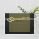 Black and gold elegance! The small circular, embossed pattern and two gold horizontal bands are the background for the featured wedding bands in this chic thank you card. Want to save money? Print this design on the 3.5" x 5" size.