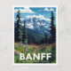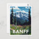 Celebrate the breathtaking high-country beauty of Banff National Park, Canada, with this gorgeous vintage-style postcard. The design features a vibrant foreground of colorful wildflowers, towering pine trees, and a backdrop of dramatic, snow-capped Rocky Mountains under a bright, cloudy sky. This travel poster is perfect for nature lovers, hikers, and anyone who appreciates stunning Canadian mountain scenery. Ideal for sending greetings, keeping as a keepsake, or framing as rustic wall art.