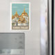 Capture the golden majesty of Bangkok with this stunning vintage-style travel poster. Featuring the intricate spires and emerald details of the Grand Palace and Wat Phra Kaew, this illustration brings the heart of Thai culture into your home. The vibrant gold and deep blue palette creates a sophisticated, exotic focal point for any living room, office, or gallery wall. Perfect for world travelers and lovers of Asian architecture and history.