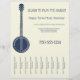 Promote your banjo lessons or other music instruction business with this flyer featuring an illustration of a banjo in navy blue with your business details in matching navy blue lettering against a soft cream coloured background. Tear off strips at the bottom make this perfect for hanging up on community bulletin boards or in music stores. You will need to use a pair of scissor to cut between the strips to make them easier for customers to tear off.