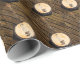 This wrapping paper features a repeating pattern of a very cool banjo on wooden slats.