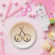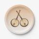 This set of paper plates presents two crossed banjos on an orange gradient background.