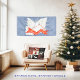 Cast in, glowing, star rays, a Dove, with wings uplifted, carries, a bright-red, banner, in its beak, inscribed with, the words, "Peace, Love, Joy"-highlighted, in glittering, stars.