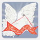 Cast in, glowing, star rays, a Dove, with wings uplifted, carries, a bright-red, banner, in its beak, inscribed with, the words, "Peace, Love, Joy"-highlighted, in glittering, stars.