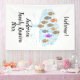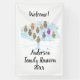 Branches of tree holds a family of owls. Each bird is different colouring. Above tree is the greeting "Welcome" and beneath are the event specifics. Personalise with your greeting, family and event name along with a date, as necessary.