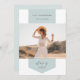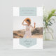 Customise this chic graduation announcement with a horizontal or landscape orientated photo overlaid on a ribbon banner in soft pale aqua. Add your graduate's name, school, and graduation year. Personalise the back with an additional photo and a personal message.