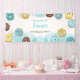 Banner "Welcome" for 1st Birthday, features a beautiful watercolor illustration of a sweet and delicious doughnuts.