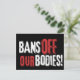Show your support of women's right to body autonomy with this "Bans Off Our Bodies" pro-choice postcard featuring grunge style white and red font on black background.