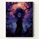 If you hear her wailing, beware! Banshees foretell the death of a loved one and this one has her glowing eyes set on YOU. She stands in a spooky village at night, the moon glowing orange above her head. A purple haze is cast over everything and eyes of creatures wait for her next move. This creepy artwork is great for Halloween or showing your love of the supernatural.
