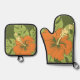 Banzai Beach Hawaiian Hibiscus Floral Olive Green Oven Mitt & Pot Holder Set