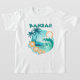Modern illustration of a big ocean wave on a tropical island with palm tress and the word BANZAI! for the surfers.